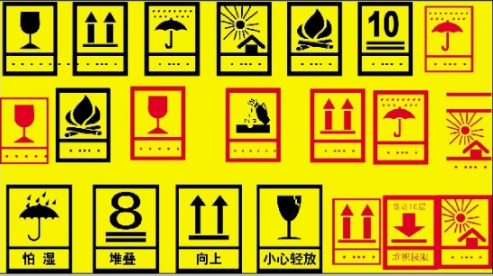 2.指示標志 依據(jù)產(chǎn)品的特性,對一些容易破碎、損壞及蛻變的產(chǎn)品,在裝卸轉(zhuǎn)移操作和寄存保管方面所提出的要求和注意事項,例如”向上“、”防濕“、”當心輕放“、”由此吊起“、”重心點“、”防 熱“、”防凍“、”堆疊高度“等,常用的指示標志如圖所示。